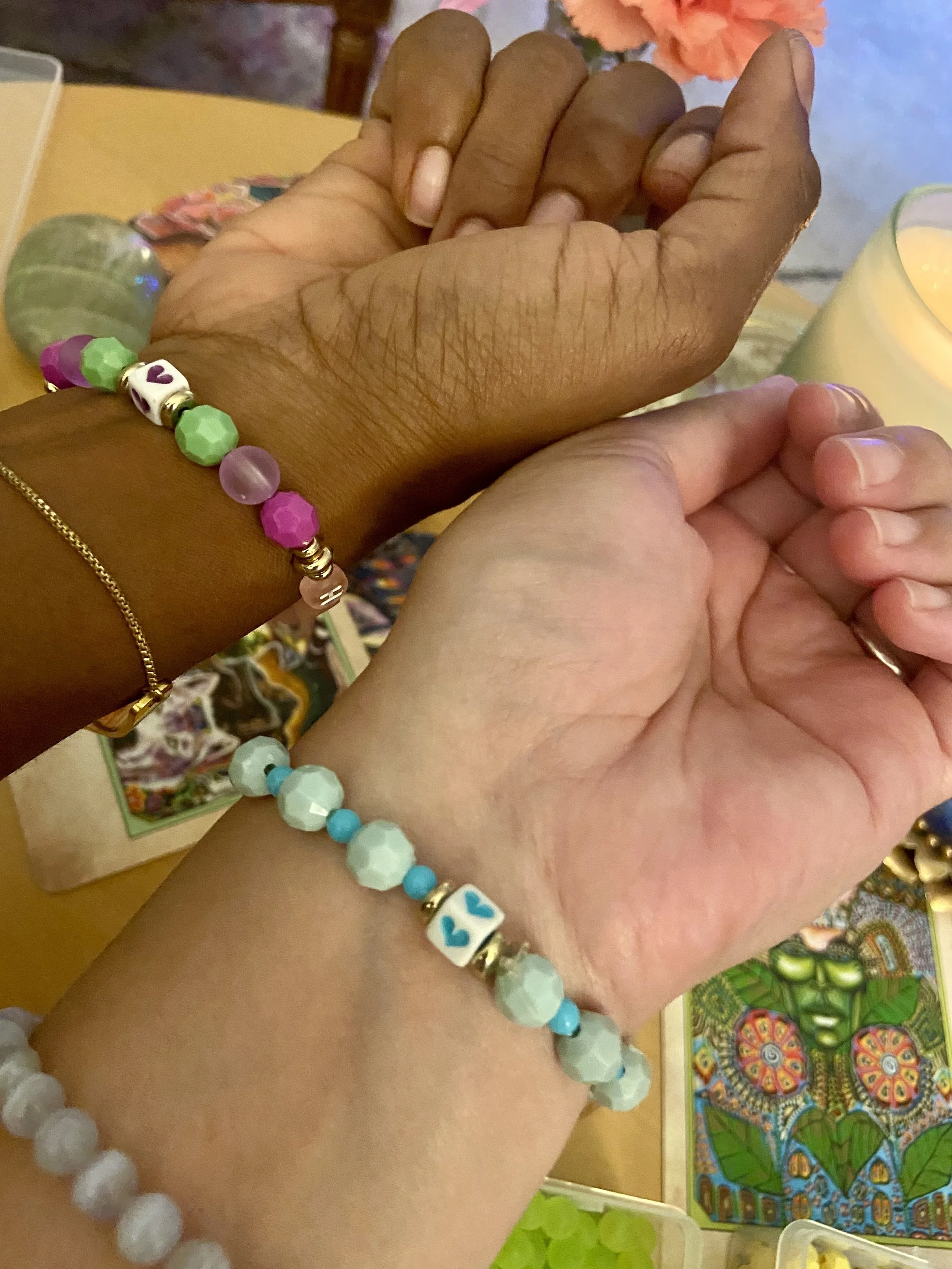 These affirmation bracelets become more than accessories. They're wearable prayers, constant reminders of how we're seen and loved by our friends. Allison and I have both felt the proof of these words - the ways they've manifested and been embodied in our lives, how they've shown up exactly when we needed them most.