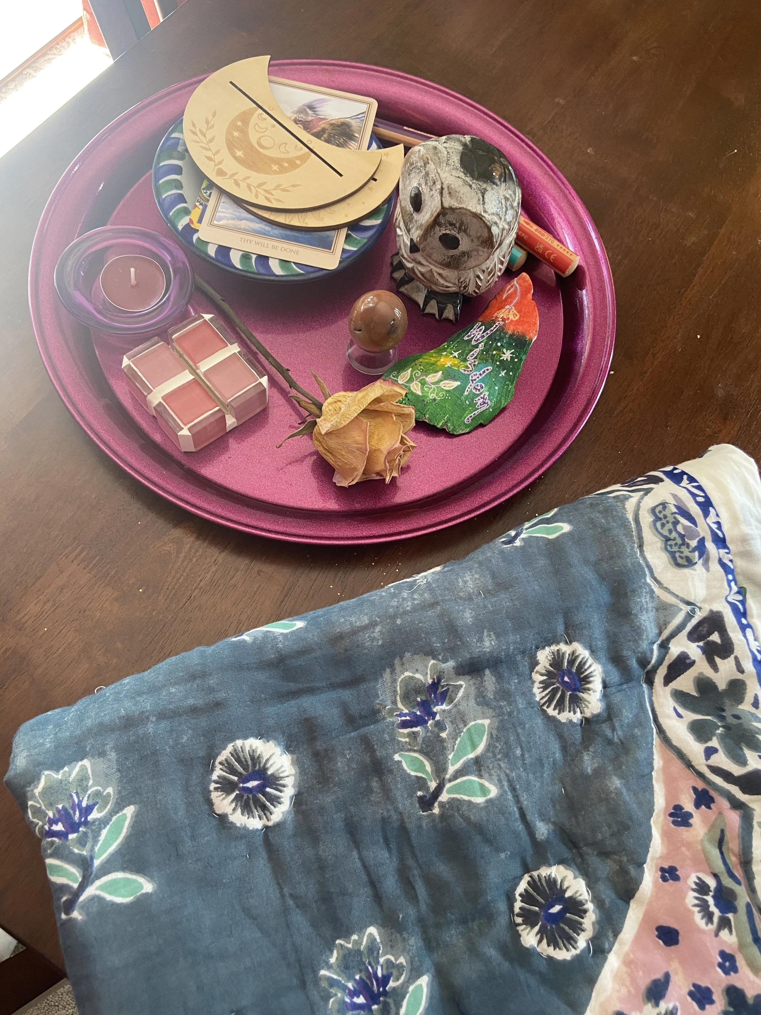 This time, I was called to arrange my mini altar outside. I wanted the earth, the bees, and the butterflies to bless my creation with their flaps and flutters. But I've done this practice countless times indoors and outdoors - any setting is the perfect setting.
